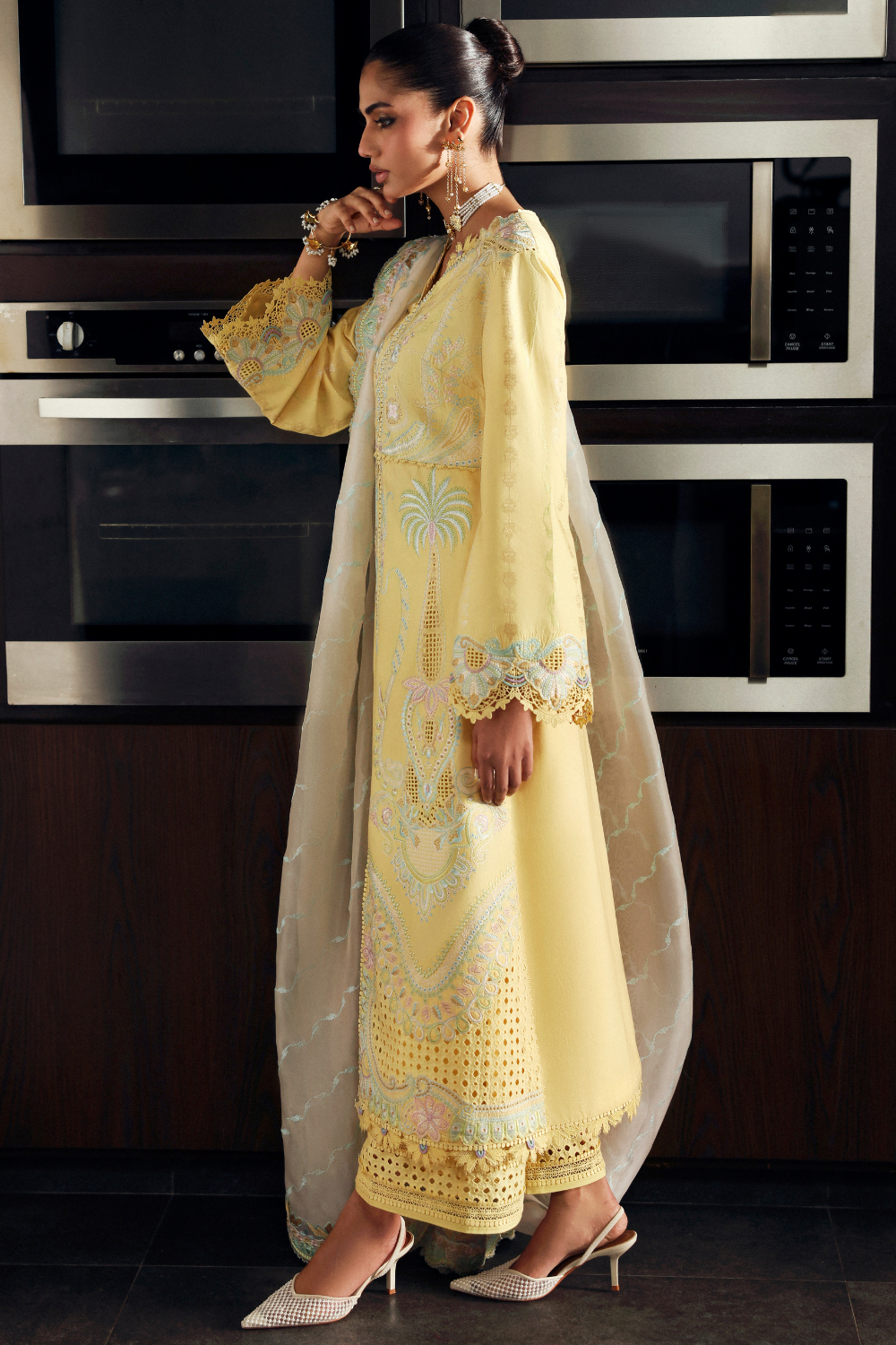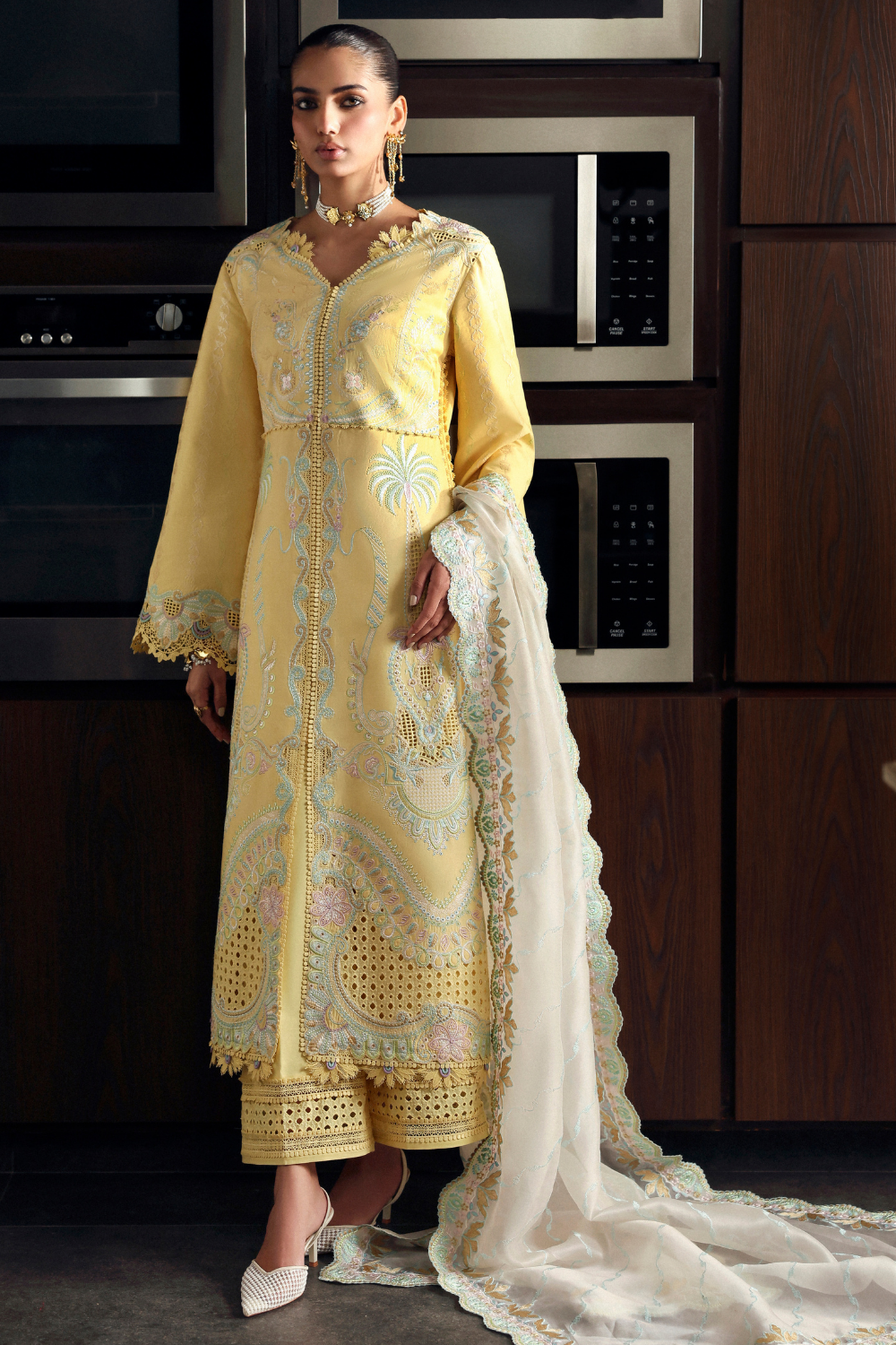 Designed to feel fresh, youthful, and soft all at once, Petaline brings together playful summer colors with delicate cutwork jali details for that effortless day look. Paired with an off-white embroidered dupatta, it keeps the look light, refined, and easy to wear from day plans to festive gatherings.